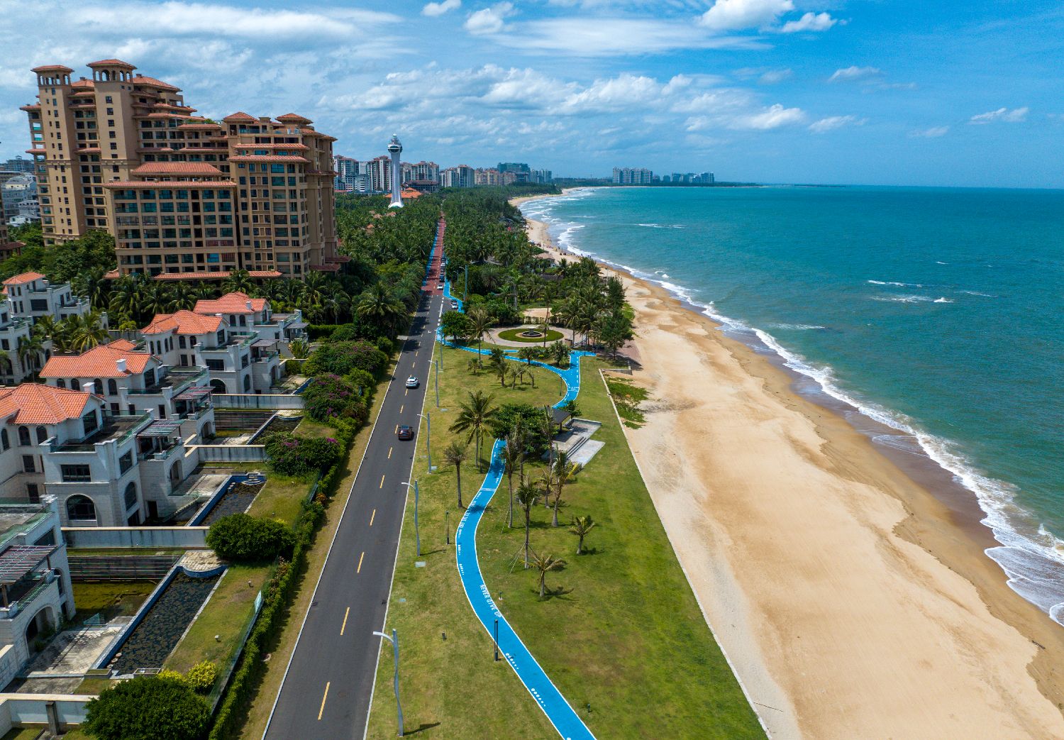 12月18日,海南环岛旅游公路通车仪式在海口举行,宣布海南环岛旅游公路全线通车。海南环岛旅游公路主线全长988公里,其中新建改建段453公里、利用段535公里,贯穿海口、文昌、琼海等沿海12个市县,通过连接线与高铁、高速、国道有机衔接,构建起“快进慢游”的交通体系;沿途经过约9类84段景观区域,初步形成一条串联全岛众多美景的“珍珠项链”。图为2023年8月6日拍摄的海南环岛旅游公路儋州峨蔓段。(无人机照片)图片来源:澳洲网