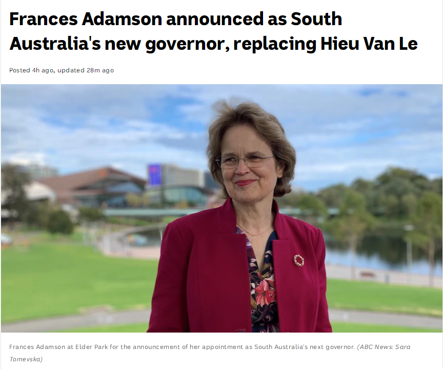 Marshall)表示,孙芳安将接替现任州督黎文孝(Hieu Van Le)。黎文孝任期将于今年8月结束。届时,她将成为南澳的第3位女州督。
