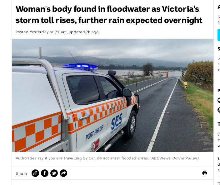 Bridge Road)附近的一辆汽车中发现了一名女子的尸体,这也是维州出现的第二个因洪水致死的人。