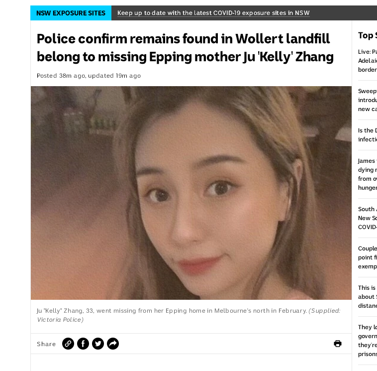 landfill)发现的遗骸属于失踪已久的墨尔本华裔女子张菊(Ju Zhang,音译)。