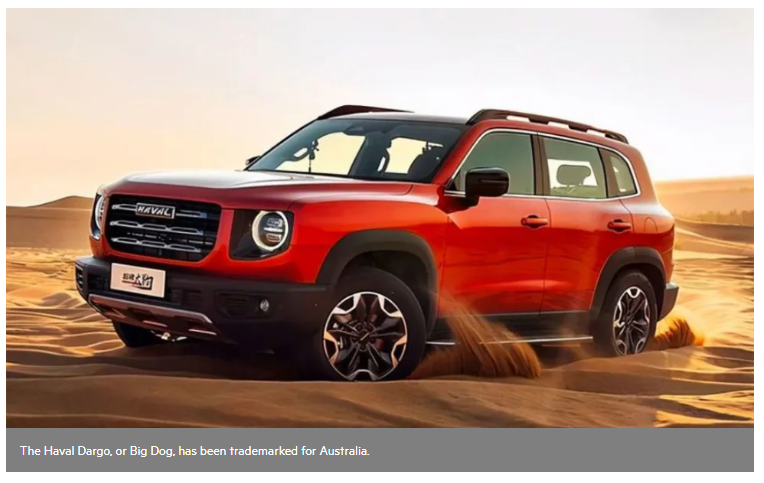 【澳洲网编译报道】哈弗(Haval)准备携一款新型SUV进入澳洲市场。这家中国汽车制造商正在澳洲为哈弗Dargo(中文大狗)注册商标,并与丰田LandCruiser、普拉德(Prado)以及吉普(Jeep)牧马人(Wrangler)等越野型SUV一较高下。