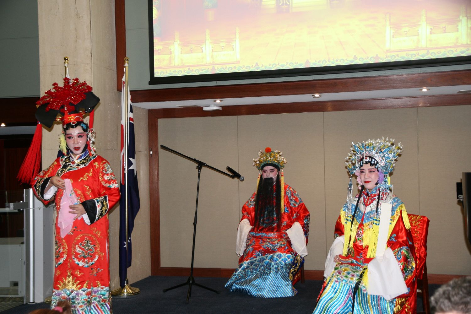 活动现场播放了由中国文字博物馆提供的汉字介绍短片,向与会嘉宾展示了汉字从甲骨文到现代汉字的演变历程。昆士兰雅韵芳华戏剧艺术团为嘉宾献上了精彩纷呈的中国传统豫剧和京剧表演。