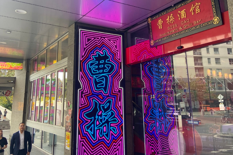 同样位于唐人街的“曹操酒馆”,则以其火辣的川菜吸引不少年轻人来品尝。站在店门口就很难不被霓虹灯拼成的“曹操”两个大字吸引。走上楼梯,能看到更多国潮元素,麻将、大鼓、刻着吉祥话的红黑色牌匾等。