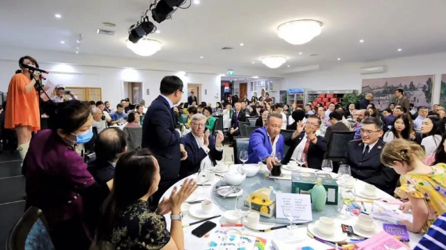 澳洲华人联合会执行主席计建民先生与著名主持人赵宇瑛女士共同主持晚宴,计建民主席并发表精彩致辞,表示:今天是疫情后非常难得的好友相聚的日子,在这难忘的日子里,畅谈人生、抒发心情、品中华传承的白酒,是一件非常美妙的事。许多中国名酒正是由山西的汾酒演变而来,深受汾酒的影响,希望大家能在汾酒和竹叶青中体会到山西厚重的文化内涵。随后他邀请现场全体嘉宾举杯庆祝,一同畅饮清香馥郁、回味悠长的赋有中华文化底蕴的汾酒和竹叶青。