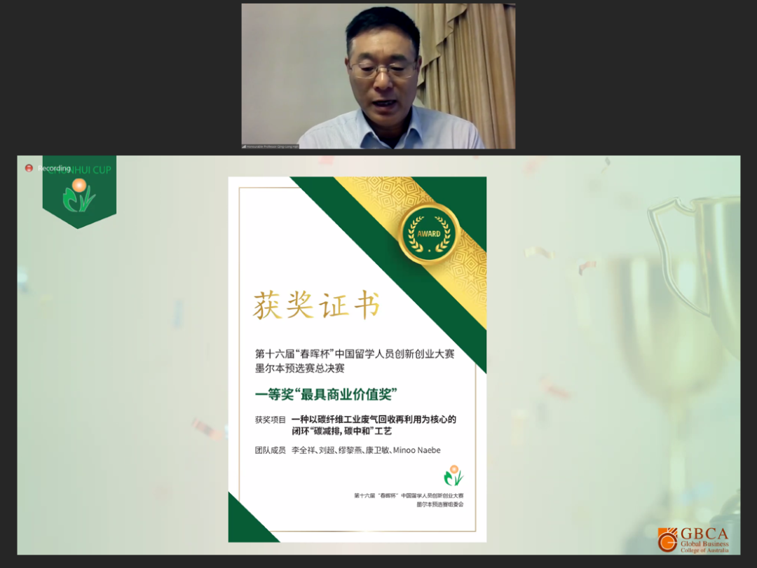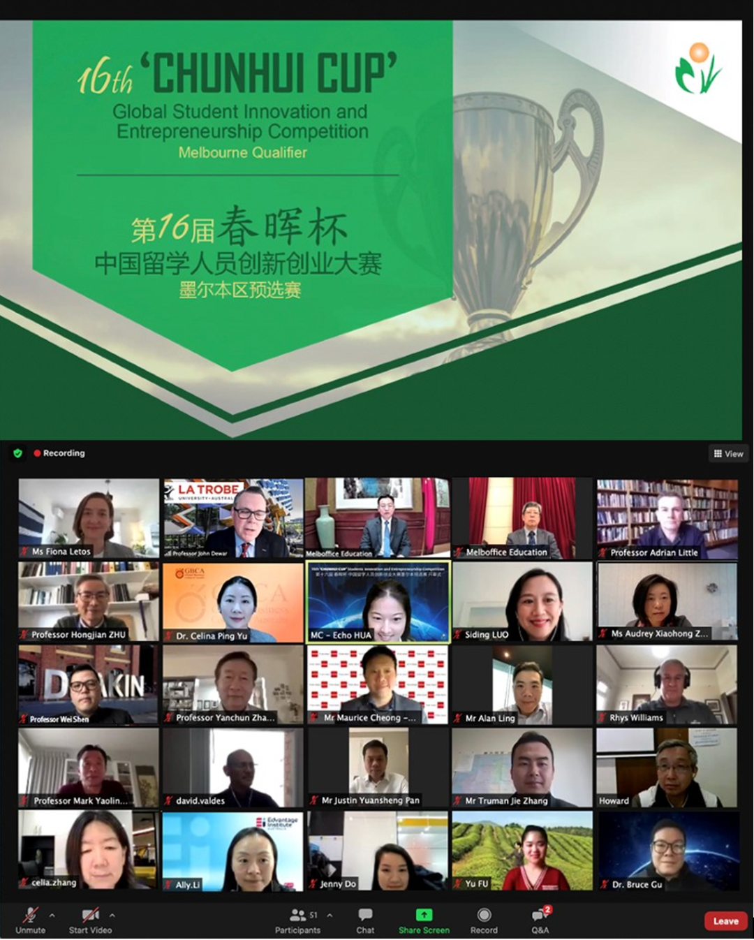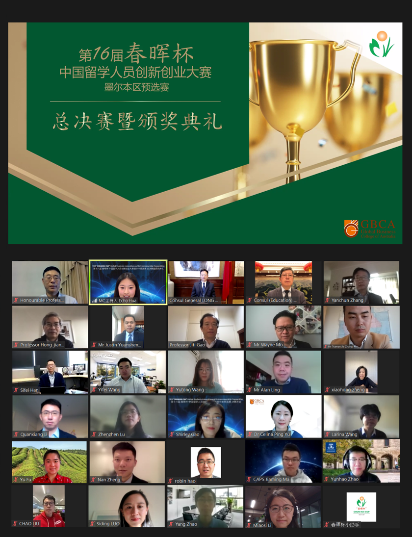 春晖灿烂,播撒创业的希望;墨书华章,见证梦想的启航。7月15日上午,第十六届“春晖杯”中国留学人员创新创业大赛墨尔本预选赛总决赛暨颁奖典礼在线上平台隆重举行。政、商、学界代表和广大媒体齐聚一堂,共同见证了优秀的海外青年学子们理想与实干齐飞,奋斗与责任同行的创新创业逐梦之旅。