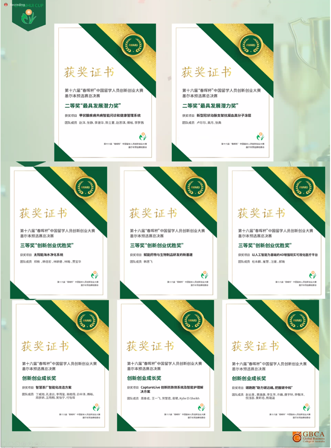 至此,第十六届“春晖杯”中国留学人员创新创业大赛墨尔本预选赛总决赛暨颁奖典礼圆满落下帷幕。