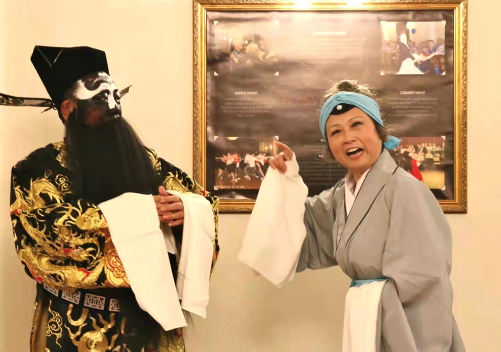 亚拉市政府Yarra City对墨尔本梅艺京剧社给予了一贯的大力支持,维多利亚州多元艺术部主任、亚拉市政府拨款部负责人迈克尔·范弗利特Michael Vanvliet先生特意赶到演出现场看望全体演职人员,何爱娟老师担任翻译,她为社团做了很多支持工作。迈克尔还饶有兴趣地穿上京剧戏服在舞台上做了一个标准的“亮相”动作,说明迈克尔先生已经知晓了京剧的精髓,他还与全体演职人员一起合影留念。