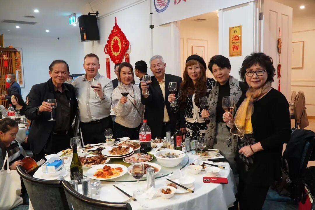 前来赴宴的主要嘉宾有:工党Chisholm选区联邦议员Carina Garland MP,莫纳什市市长Stuart James先生,Mount Waverley区州议员Matt Fregon先生,博士山区州议员Paul Hamer先生,莫纳什市副市长兼市议员Tina Samardzija女士,Glen Waverley市议员罗丹女士,维州多元文化大使、前澳大利亚人民大使赵捷豹先生,知名侨领郑昌振会长,澳大利亚广东联谊会会长、澳洲中华总商联合会监事长、澳大利亚广东总商会名誉会长黄壮先生及夫人,澳大利亚天津国际商会会长王立先生,澳大利亚天津国际商会常务会长马红女士,澳大利亚湖南同乡会会长邢明先生,白马市华人联谊会执行会长朱敏安先生,墨尔本北京同乡会会长杜缨女士,澳大利亚云南总商会会长余晓君女士,澳亚总商会会长李燕凌女士,澳大利亚广东联谊会执行会长冯丹红女士,澳大利亚河南同乡会会长付高潮先生,澳大利亚浙侨会执行会长薛可为女士,维州华人摄影协会会长曾建华先生、墨尔本梅艺京剧社社长高丽云女士,澳大利亚广东工商联合会会长阿波罗林先生,大洋传媒社长冯团彬先生,Yering Meadows高尔夫球俱乐部董事长林女士,澳大利亚华人联合会副主席丁大伟先生,澳大利亚华人联合会副主席袁芳女士,墨尔本知名企业家杜少山先生,皇家墨尔本理工大学知名教育家陈杨国生女士及先生,墨尔本著名主持人刘霏女士及先生,墨尔本著名诗人小林东秀女士,万泽集团总经理Leeson先生等(以上排名不分先后;由于到场嘉宾人数众多,本文无法逐一列举)。