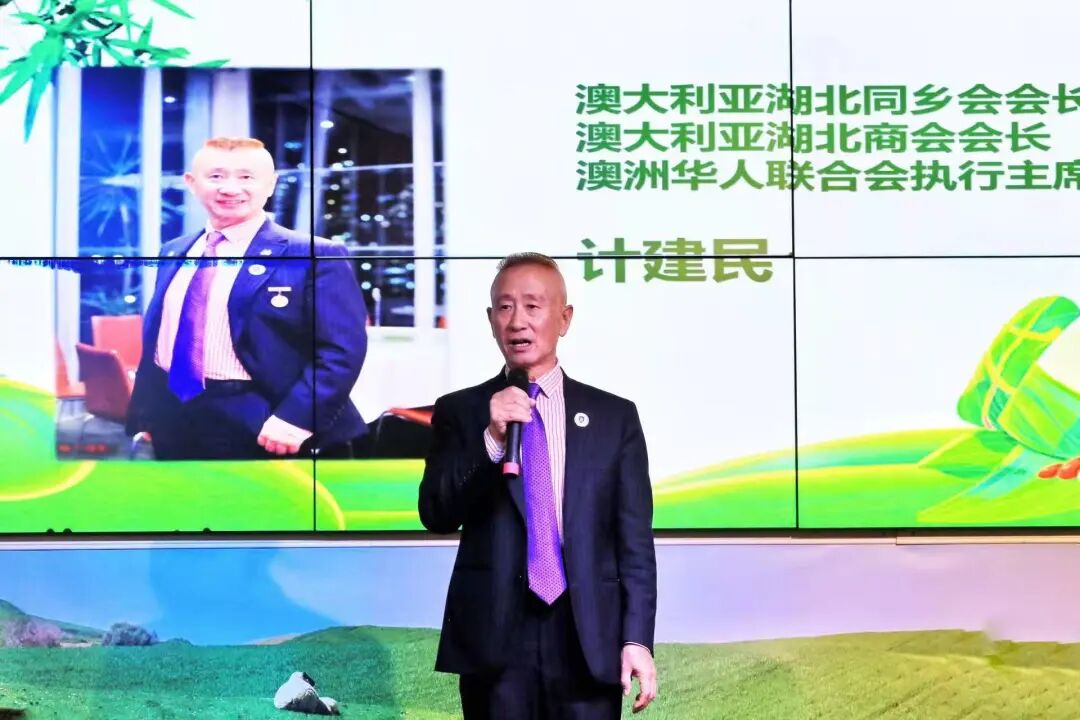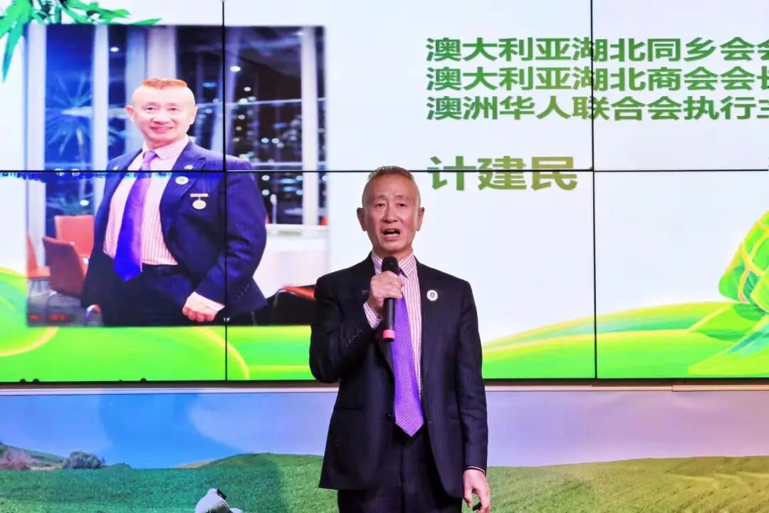 计建民会长首先代表主办方致欢迎辞,他表示:澳洲华人联合会、澳大利亚湖北商会、澳大利亚湖北同乡会,为喜迎端午佳节,今日广邀八方宾客,隆重举办端午节庆典。新冠疫情前,我们每年都举办大型的端午庆祝活动,为传承美好传统中华文化,更为澳洲多元文化的丰富和发展做出积极贡献。疫情发生后,澳洲华人联合会、澳大利亚湖北同乡会、湖北商会为海内外华人华侨和澳洲当地居民的健康和防疫在第一时间做出了重大贡献。为家乡湖北的第一线的医护人员,捐赠了价值超过1800万人民币的防疫物资,同时为澳洲社会各社区、各团体捐赠了大量制氧机、口罩和洗手液,向多家敬老院、医院和老年协会捐赠了海量防疫物资。我们不仅为海内外华人华侨做出了积极的榜样,更是作为澳洲公民和社会的一份子,回馈澳洲社会,为澳洲抗击疫情也做出了积极重要的贡献。今天,我们再次邀请各位嘉宾朋友共同欢度端午佳节,叙旧情、畅未来,欢迎和感谢大家的到来!