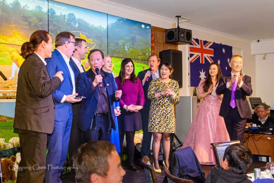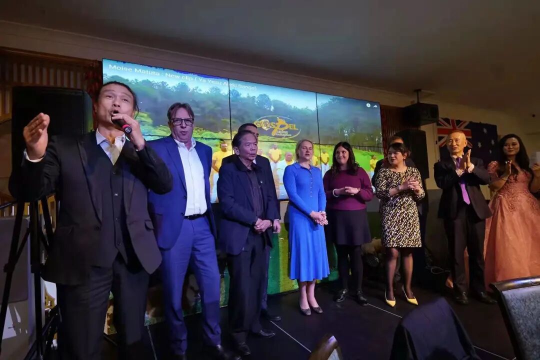 主要嘉宾致辞完毕后,盛宴迎来了全场最高潮的一幕:议员们携手登台为在座嘉宾演唱经典民谣《Moise Matuta》。众位澳洲联邦议员和州议员在华人社团活动中登台献唱,前无古人,历史首次!此情此景,充分体现了澳洲政府官方对于澳洲华人联合会、澳大利亚湖北同乡会、澳大利亚湖北商会全心全力服务澳洲、奉献澳洲的执着精神品质,给予的高度赞扬和认可。