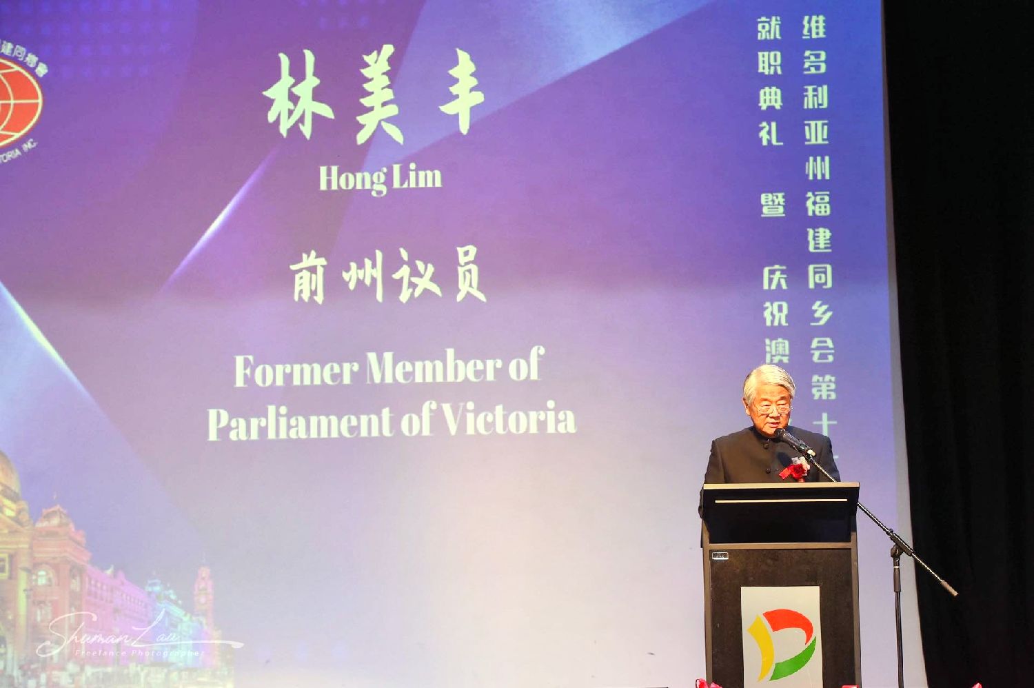 代表州长前来的维州州议员Danny Pearson MP代表州政府感谢福建同乡会为新移民树立了良好榜样;前维州州议员Hong Lim先生表示20多年来亲眼目睹了维州福建同乡会从无到有、从小到大的成长过程,乐见我会成为当下知名度较高的维州重要社团之一;墨尔本洪门民治党主委伍颂达先生高度赞扬我会在后疫情时期具勇气率先恢复正常社团活动,为华人社区的互动和交流带了个好头;“维州多元文化大使”赵捷豹先生也是我会多年的老朋友,他充满深情地对我们提出殷切期望:百尺竿头,更进一步,笔者感触之余,果断地将其设为本文的标题。前联邦议员廖婵娥女士则是唯一上台发言的女嘉宾,她说她与陈琛会长的交情源远流长,对于她的人格魅力和办事能力早就敬佩不已,或许是出于女性的同感,她深知一个女性要在男性人数绝对占优的人群里“冒泡且冒尖”是何等的不容易。
