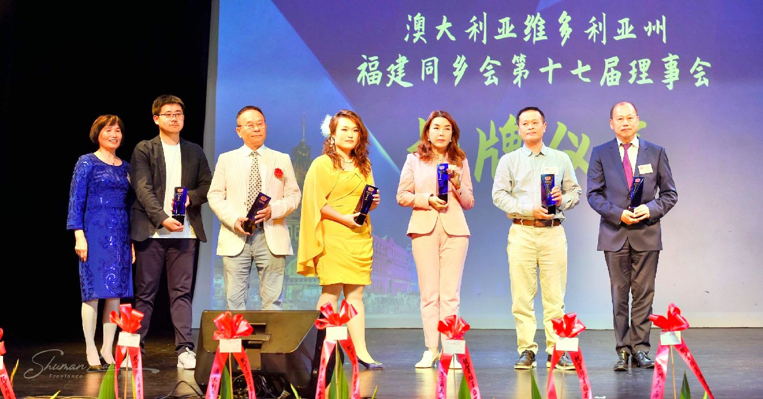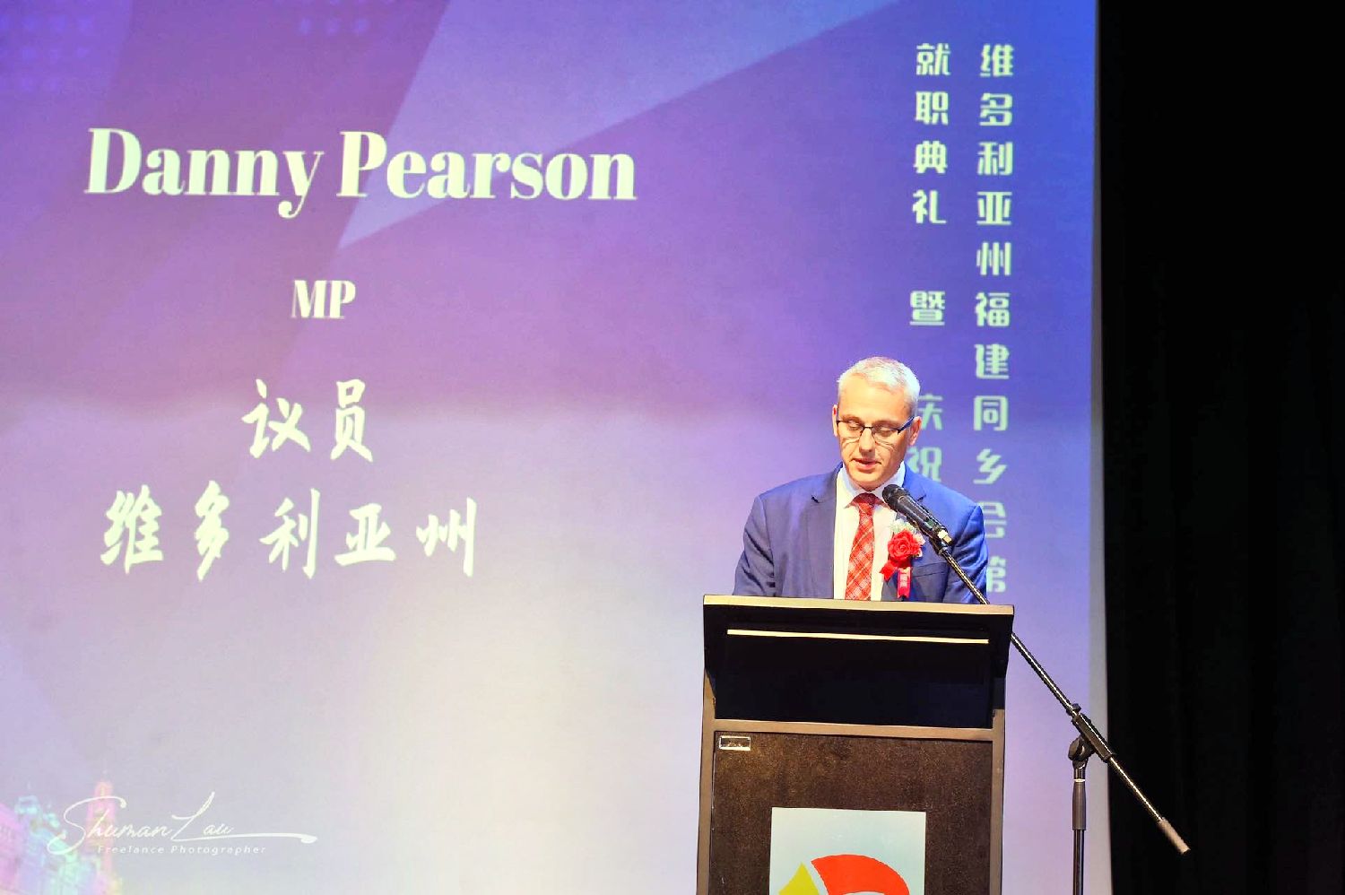 维州州议员Danny Pearson MP代表澳洲联邦议员Mr Luke Donnellan MP向六位社区杰出贡献者颁发“服务社区”感谢证书,我会荣获证书的是三位资深名誉会长:吴有民,郑晓君和宋佳彬;维州州议员Danny Pearson MP为陈琛会长授牌;陈琛会长为名誉会长授牌。