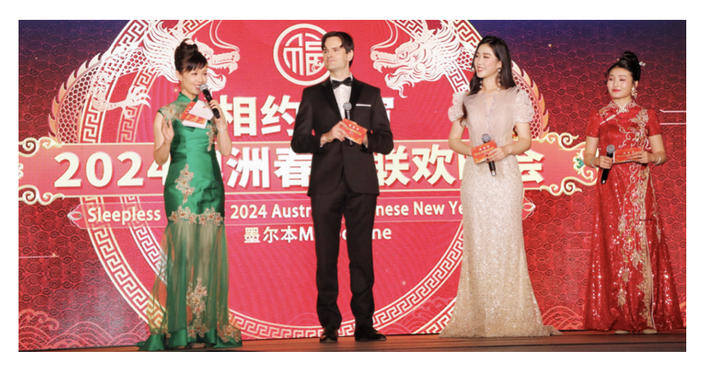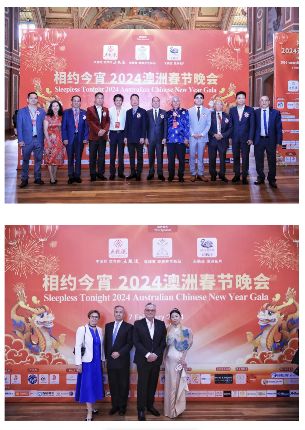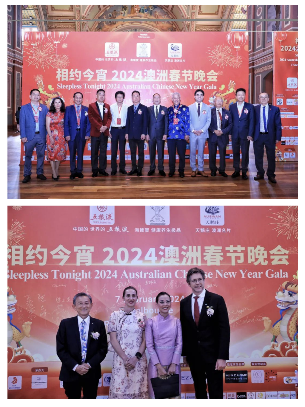 来自中国、英国、日本、法国、马来西亚、泰国、萨尔瓦多和秘鲁等国的多国外交使节,以及多位澳洲联邦或州政府高级官员都来到了《相约今宵-2024澳洲春晚》墨尔本站现场。