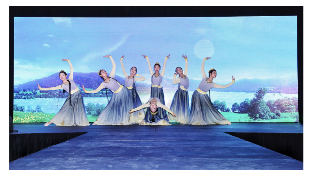 多民族歌舞串烧,维族舞蹈《西域少年》;蒙古族舞蹈《顶碗舞》 ;壮族歌曲《壮家好客三碗酒》;藏族歌舞《我从雪山来》,他们的舞蹈串烧把中华各地的民族舞蹈的美表现得淋漓尽致。
