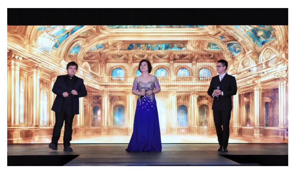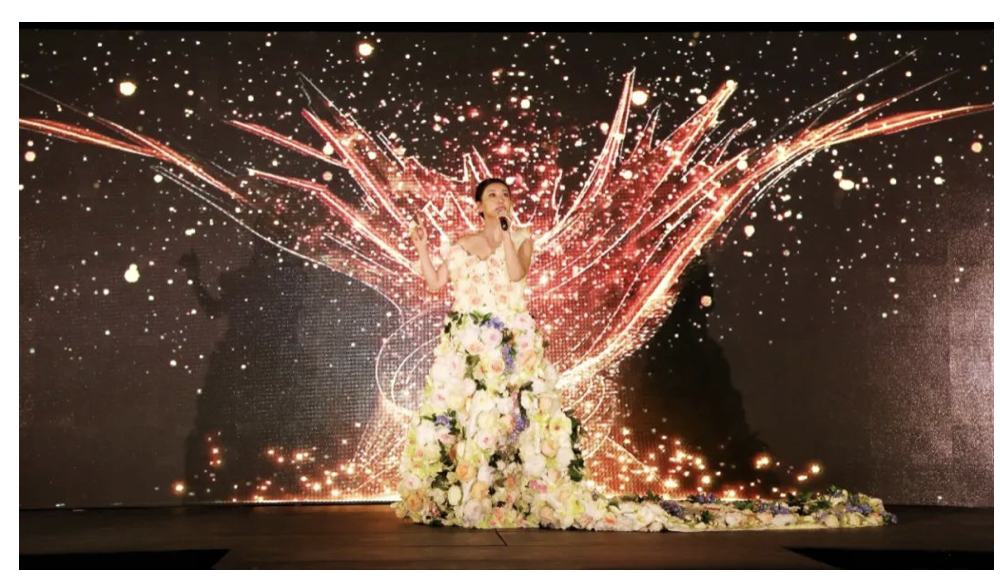 春晚总导演Wendy Mao带来中英文连唱《如愿》、《Dream lt Possible》两首歌曲,以其深情款款的旋律和深刻的歌词感动着每一个听众的心灵,Wendy Mao通过她独特的嗓音和情感表达,将歌曲演绎得淋漓尽致,观众们仿佛沉浸在梦幻般的音乐氛围中。