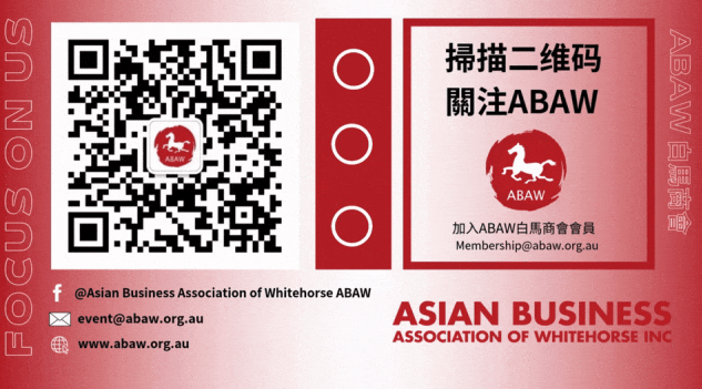 ABAW白马商会成立于2002年,总部位于墨尔本。作为澳大利亚最知名的亚裔商会之一,我们的使命是通过商业、文化和合作,搭建一个连接本地企业、企业家和社区领袖的桥梁和平台。我们的目标是加强本地企业之间的联系,并帮助他们更好地融入这个多元文化的国家。我们的会员来自各行各业,包括科技、教育、制造、文化和贸易,既有大企业,也有中小型企业。全年组织包括了新春嘉年华,中秋嘉年华,networking在内的数十场活动,参与人次超过40万人。