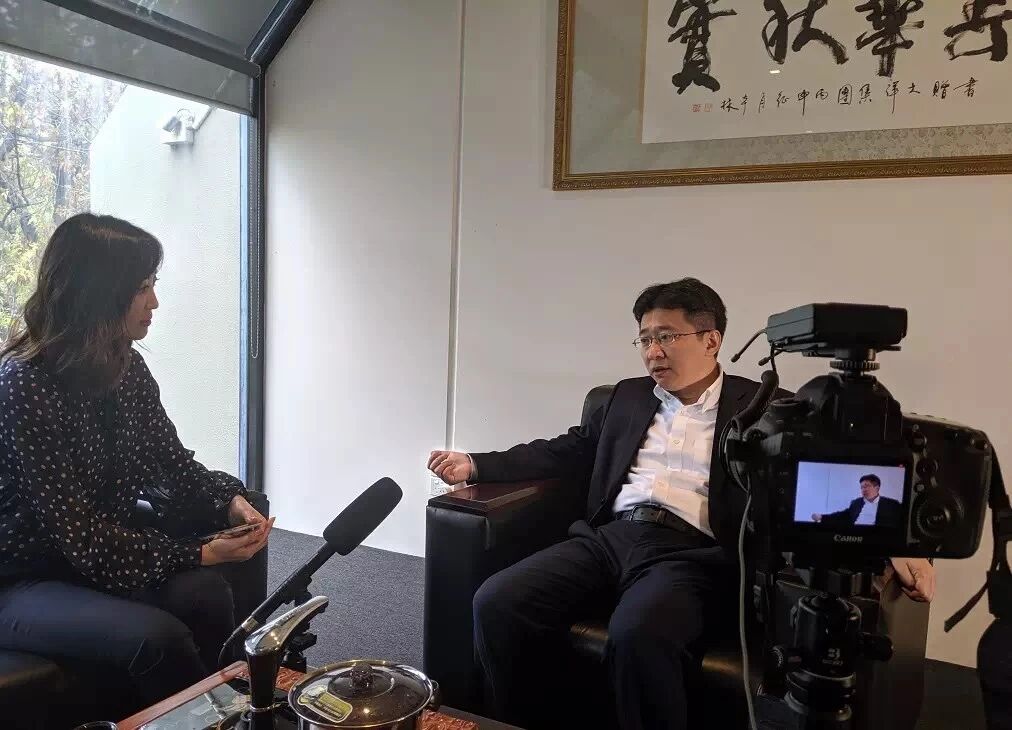 段大为在澳大利亚大洋传媒接受采访(记者紫烟拍摄)