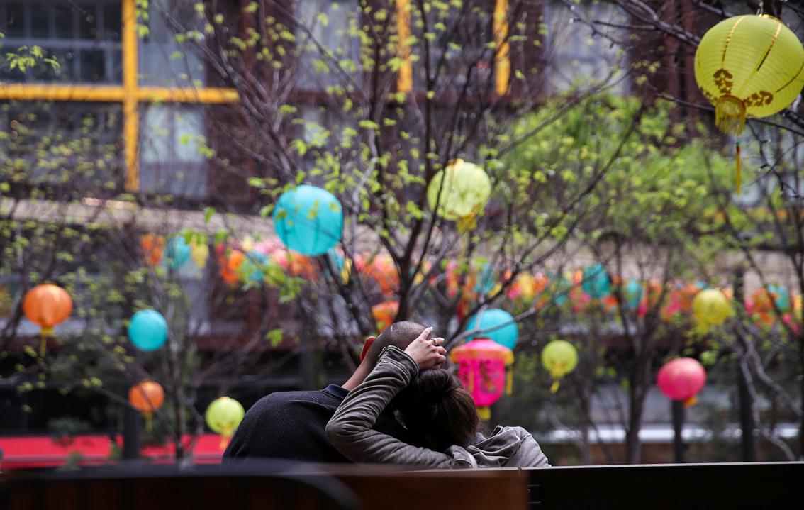9月30日,在澳大利亚悉尼,市民在中秋灯笼下休憩。