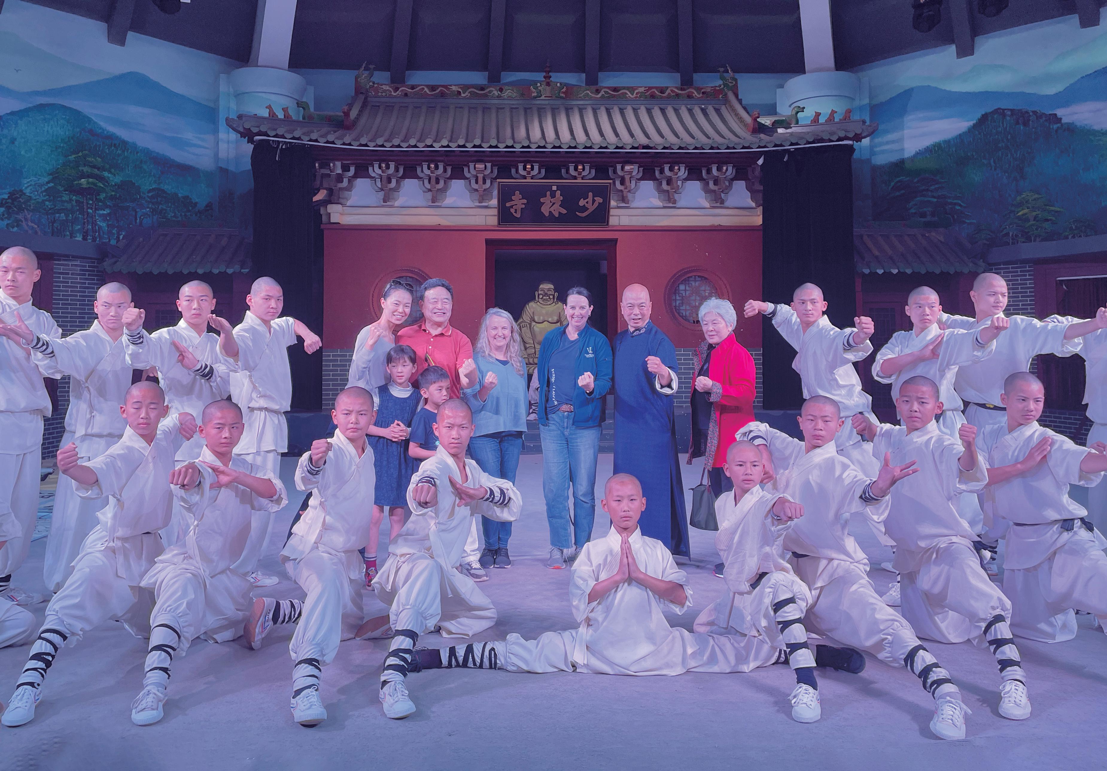 少林文化 人类遗产——张国臣、张小羽和美国佛蒙特法学院院长贝丝·麦科马克(后排右六)、副院长凯蒂·梅里尔(后排右七)考察少林武术文化(2023年10月29日)