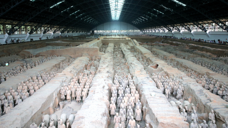 作为20世纪中国最重要的考古发现之一,秦始皇陵兵马俑“横空出世”四十多年来,如同“中国文化的密室”,始终引发着公众的无尽遐想与追问。千人千面的数千件陶俑组成气势恢宏的庞大军阵,形成强烈的视觉冲击力,吸引数以亿计的海内外观众前去参观,其中包括200多位外国元首和政府首脑。