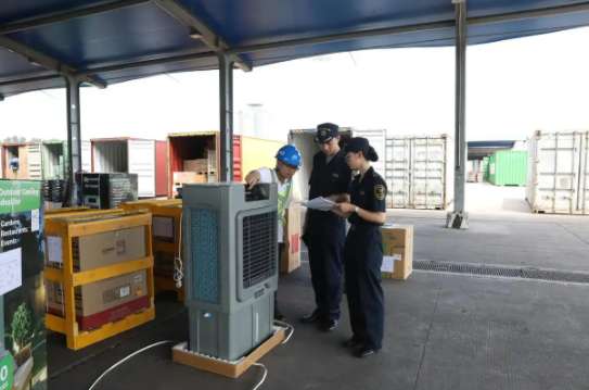 这批货物是来自埃及的热水器、洗衣机和空调等家用电器,共计103件、总重6248千克,为历届广交会单批进境展品重量之最,标志着第138届广交会布展工作拉开序幕。