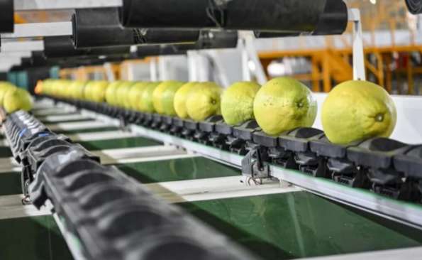 科技贯穿生产的每一环节。在梅州万川千红农业发展有限公司(下称:万川千红)的车间,自动化生产线有序运转,蜜柚经光电分选机依据大小、糖酸度等参数精准分级,实现“优果优价”。“品质好的柚果能卖到每斤3.5元!”公司负责人丘牡香介绍。