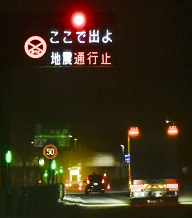 图为9日凌晨,在日本北海道千岁市,交通显示屏提示前方道路受地震影响限制通行。(图/新华社)