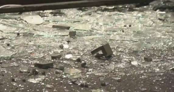 图为日本青森县八户市一酒店地震后,玻璃破碎并散落了一地。(图/广州羊城派)