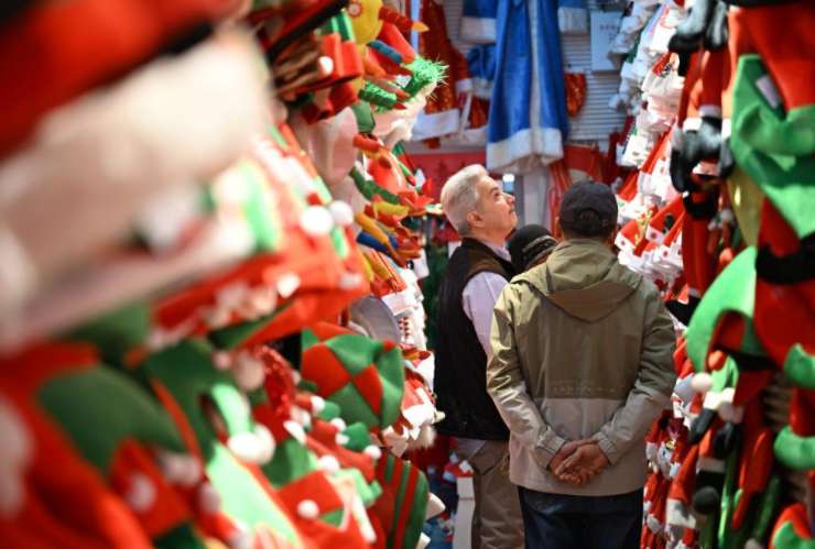图为12月17日,科威特商人在浙江义乌国际商贸城内挑选圣诞产品的样品。(图/新华社)