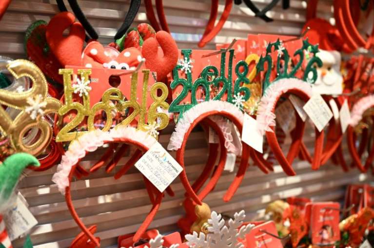 图为12月17日,浙江义乌国际商贸城带有“Hello2026”装饰的发箍。(图/新华社)
