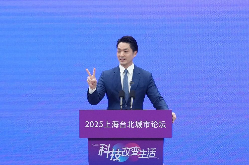 图为12月28日,台北市市长蒋万安出席“2025上海台北城市论坛”主论坛。(图/中新社)