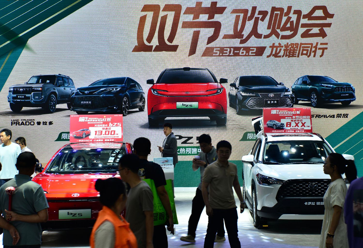 1月14日,中国汽车工业协会发布数据显示,2025年,中国汽车产销量均突破3400万辆,再创历史新高。新能源汽车产销量均超1600万辆,新能源汽车国内新车销量占比突破50%。资料图为2025年5月30日,福建福州,民众在一汽车展览会上参观、选购展销的车辆。(图/中新社)