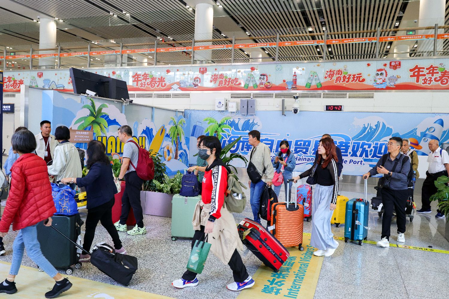 图为1月17日,入境旅客抵达海口美兰国际机场。(图/中新社)