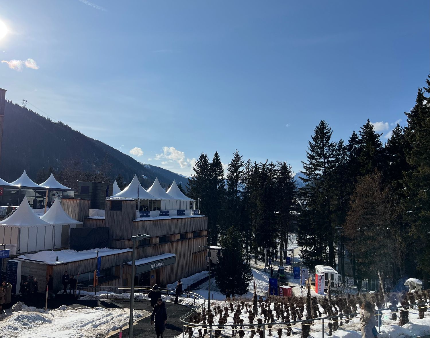 图为当地时间1月19日,世界经济论坛2026年年会在瑞士东部小镇达沃斯拉开帷幕。图为会议中心外景。(图/中新社)