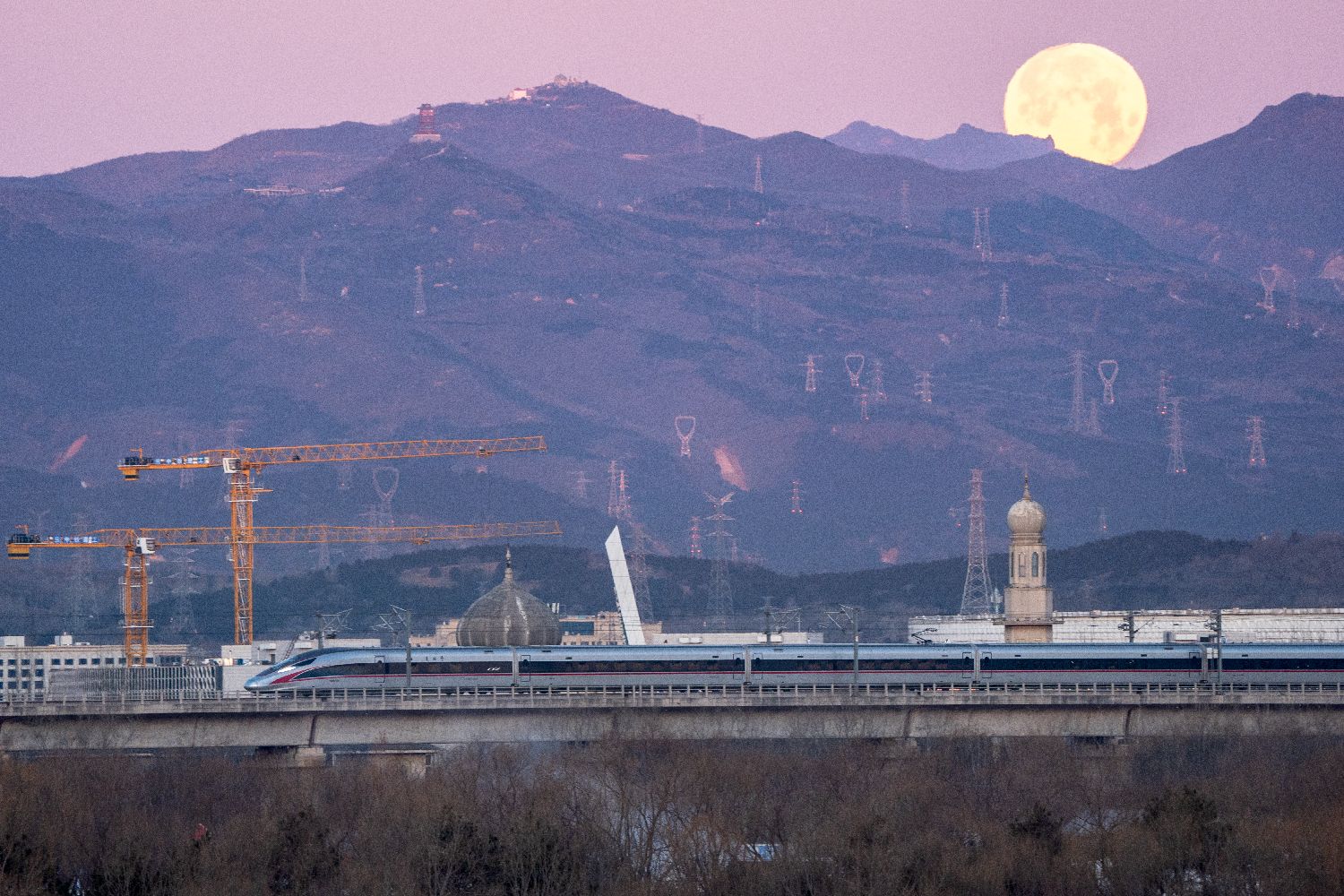图为2月2日,一列复兴号高铁列车经过北京西山。(图/中新社)