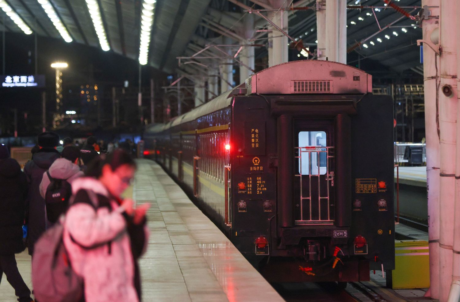 图为2月2日,2026年北京地区发出的首趟春运列车K4069次列车从北京西站缓缓驶出。(图/中新社)