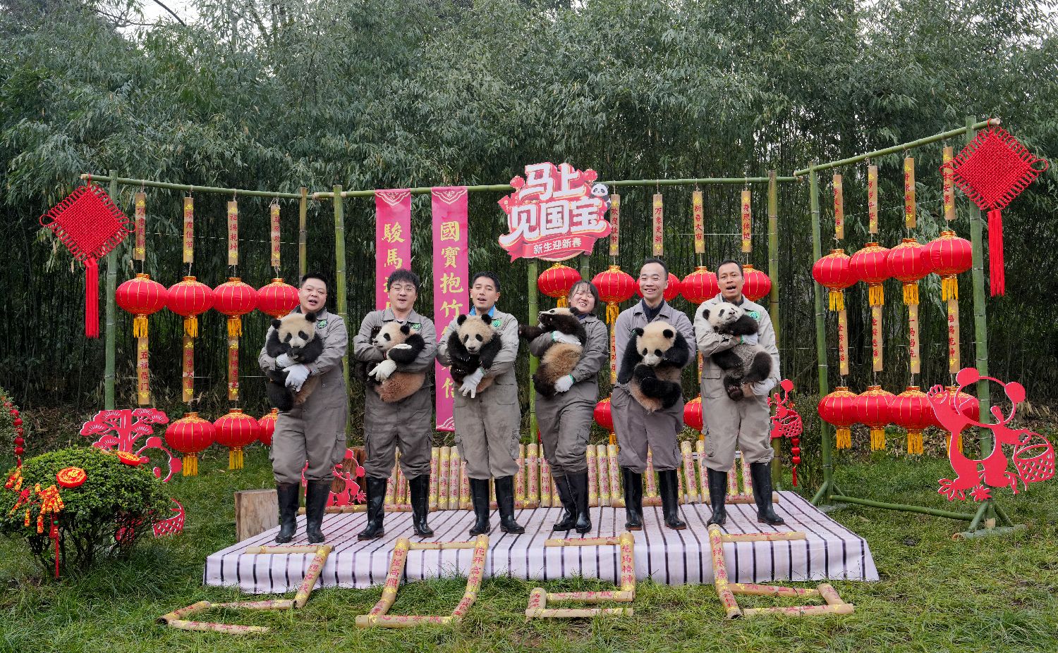 11日从大熊猫国家保护研究中心获悉,在其举办的“马上见国宝”新春主题活动上,该中心旗下熊猫中心和四川成都大熊猫繁育研究基地(简称熊猫基地)30只2025年新生大熊猫亮相,在送上新春祝福的同时,集中展现两大机构2025年大熊猫繁育成果。