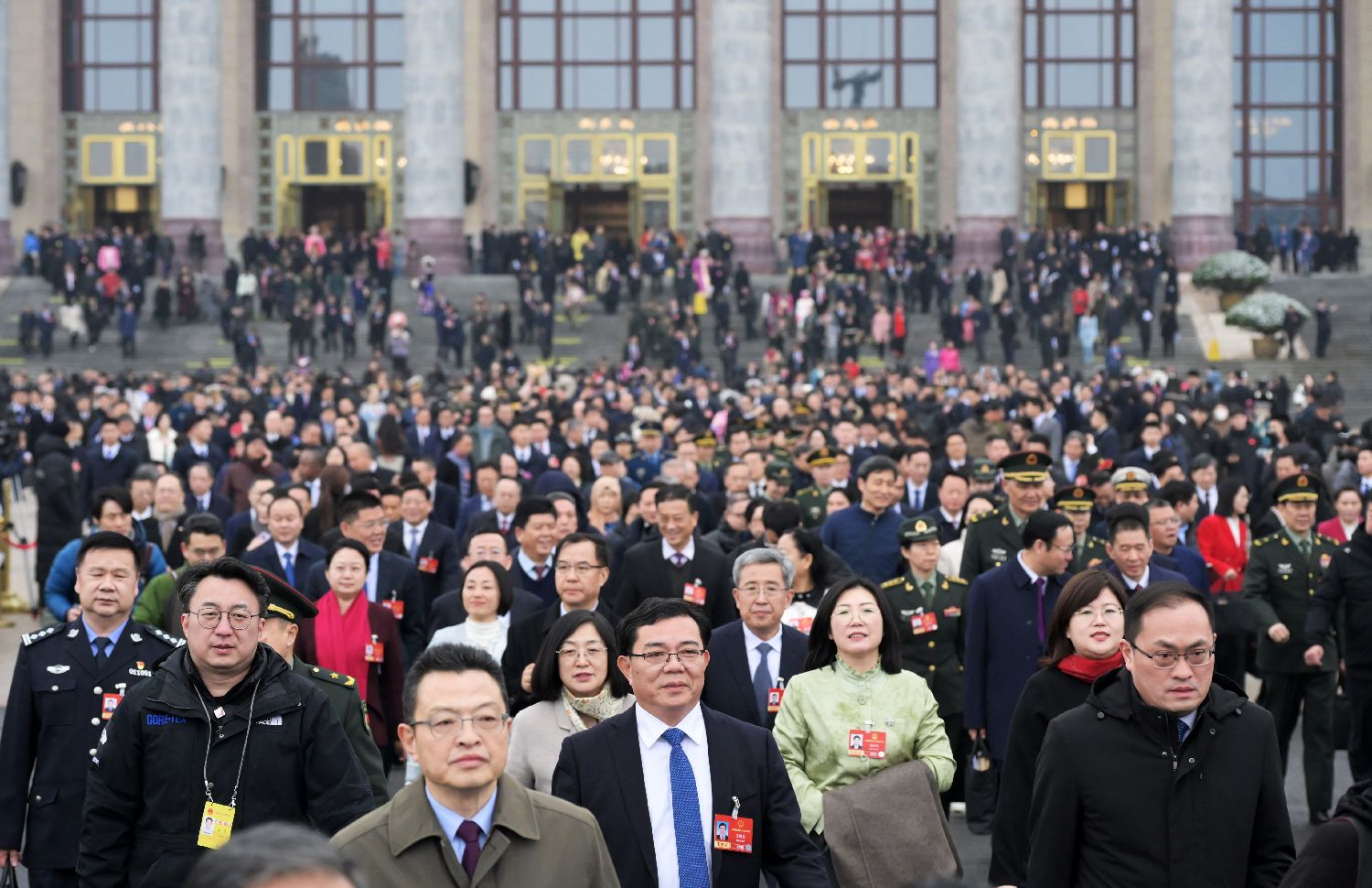 3月5日,十四届全国人大四次会议开幕会在北京人民大会堂举行。图为会议结束,参会代表走出人民大会堂。(图/中新社)