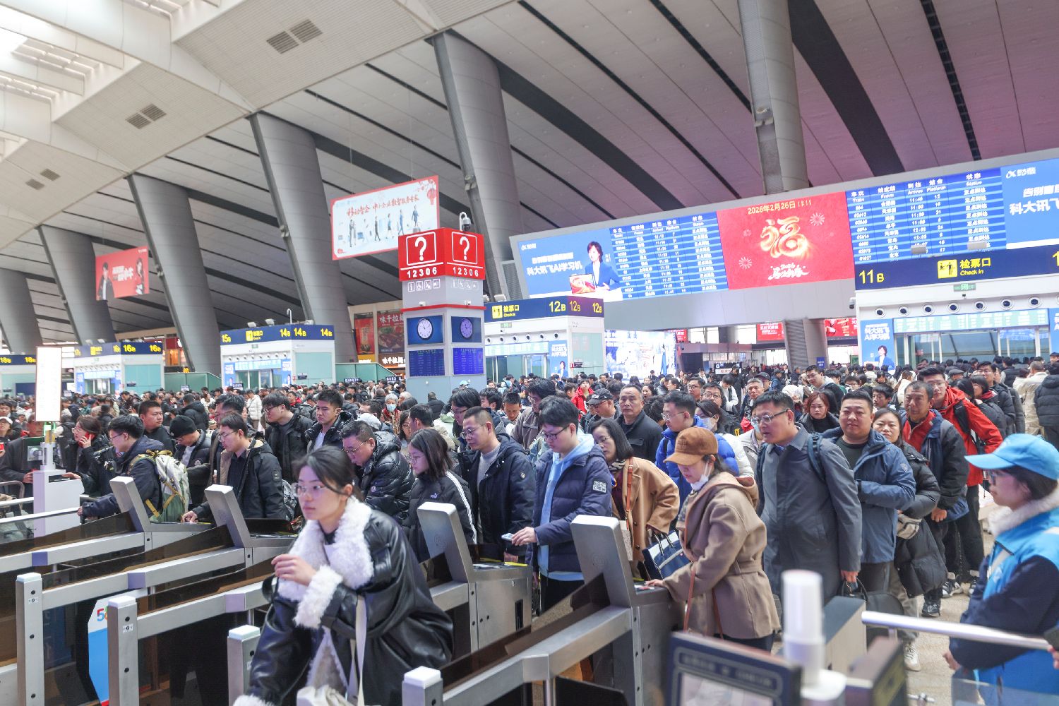 图为2月26日,旅客从北京南站进站乘车。(图/中新社)