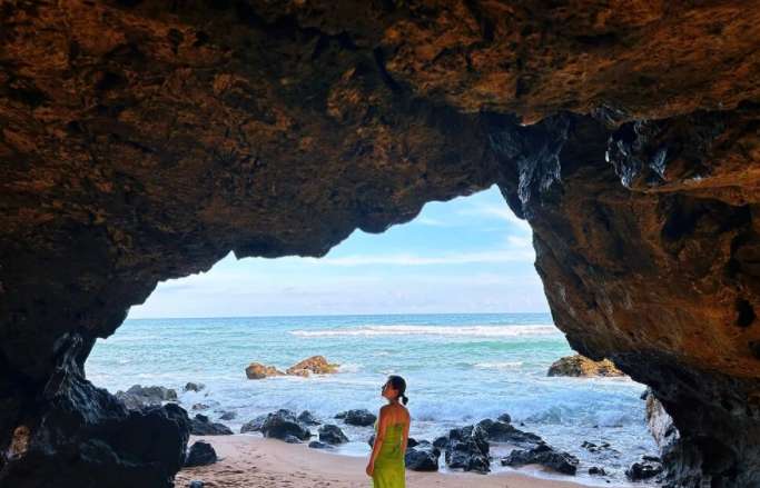 图为万宁山钦湾燕子洞绝美海景吸引游客拍照打卡。(图/中新网)