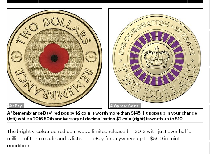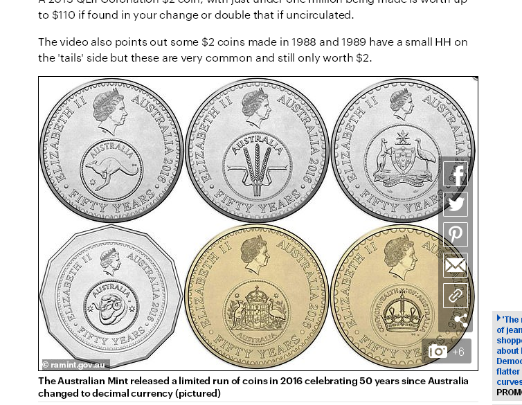 比如,2016年为了纪念澳洲改成十进制50周年而发行的2刀硬币,全澳发行量只有290万枚,现在每一个价值最高10刀。