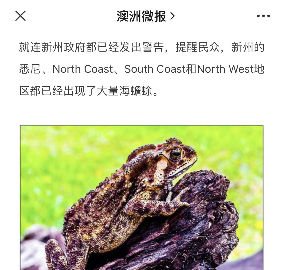 就连新州政府都已经发出警告,提醒民众,新州的悉尼、North Coast、South Coast和North West地区都已经出现了大量海蟾蜍。