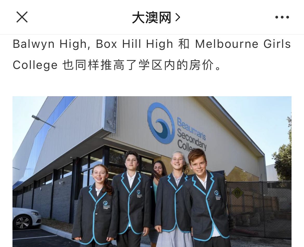 Balwyn High,Box Hill High和Melbourne Girls College也同样推高了学区内的房价。