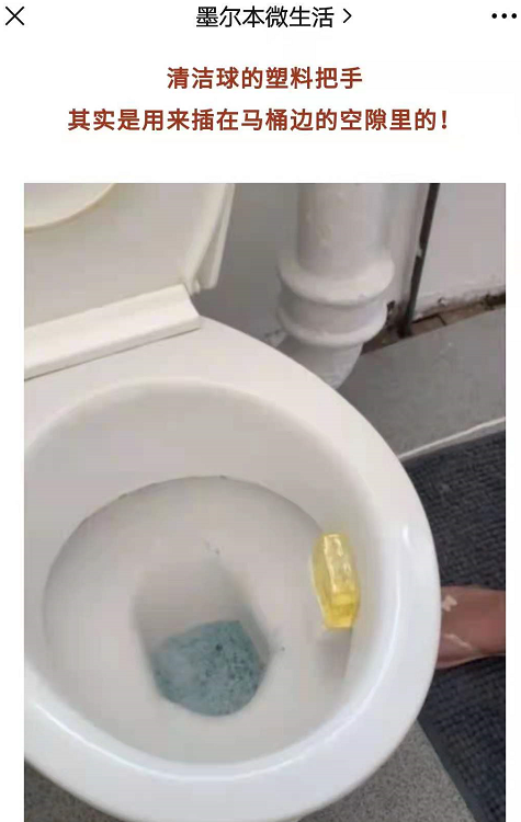 马桶清洁球的错误使用方法。(图/墨尔本微生活微信公众号截图)