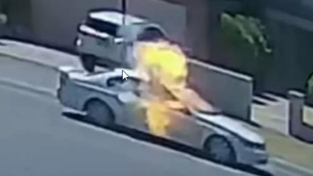 在爆炸发生后,男子的车辆在无人操控的情况下继续向前冲去,直到撞上了一辆停放在路边的车才停下。