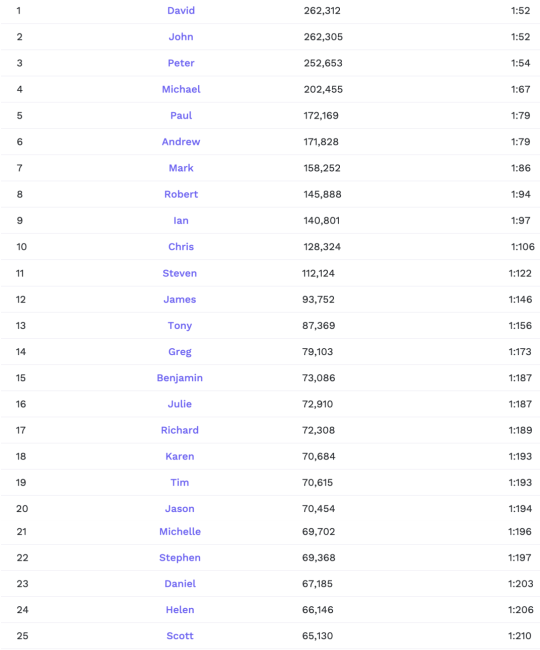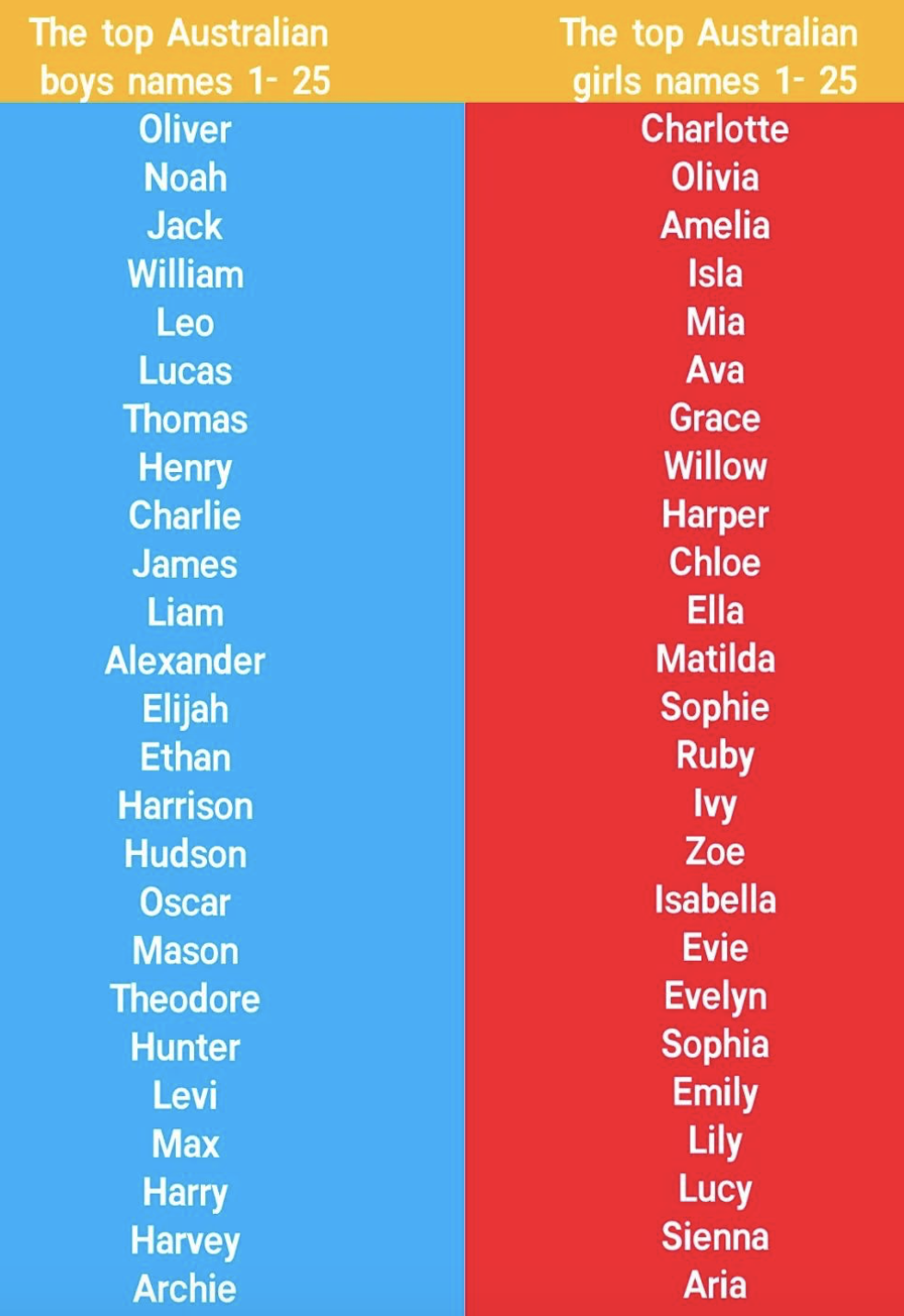 具体排名如下(图/澳洲红领君微信公众号截图):新生儿最受欢迎英文名:
