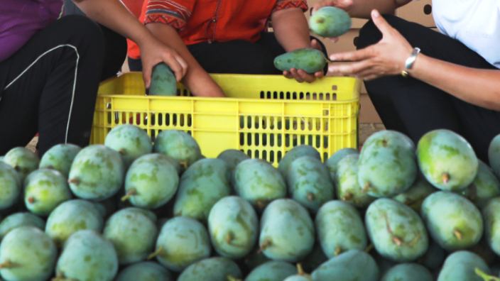 在Saramat“Tou”Ruchkaew芒果农场,一切就绪。包装工人和采摘工人每周工作7天,每天工作12小时,在果实完全成熟的时候把它们从树上摘下来。但是,时间已经不多了,Ruchkaew女士农场的工作人员还不到所需的一半。