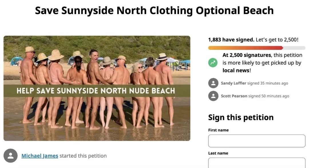 目前,一份“拯救”裸体海滩的在线请愿书已收集到近2000个签名。