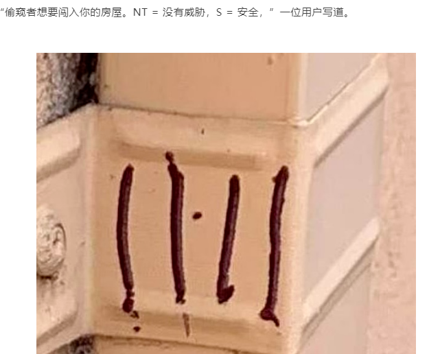 一些用户表示这些标记是该地区潜在小偷的代码。