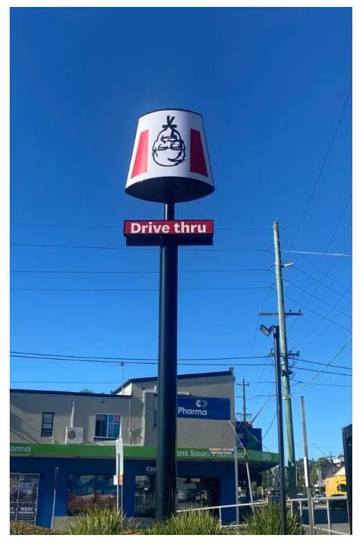 今日墨尔本微信公众号报道,这家位于热闹城区Sans Souci的KFC,其标志性“炸鸡桶”招牌原本高高耸立,如今却整个颠倒了。